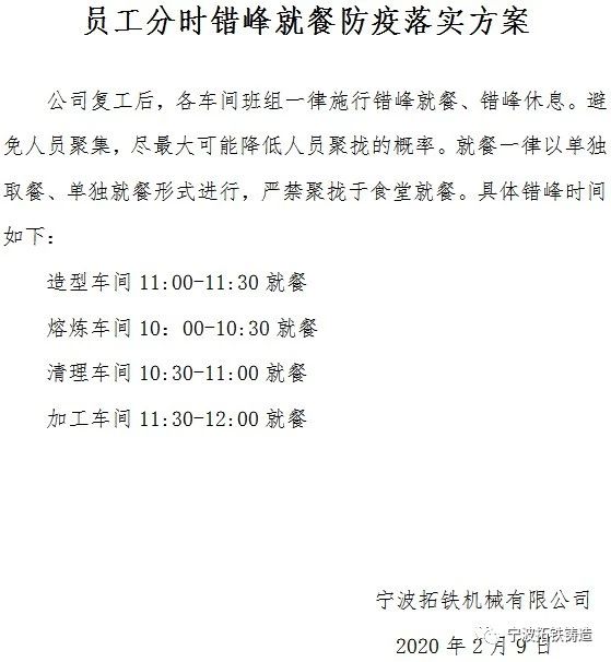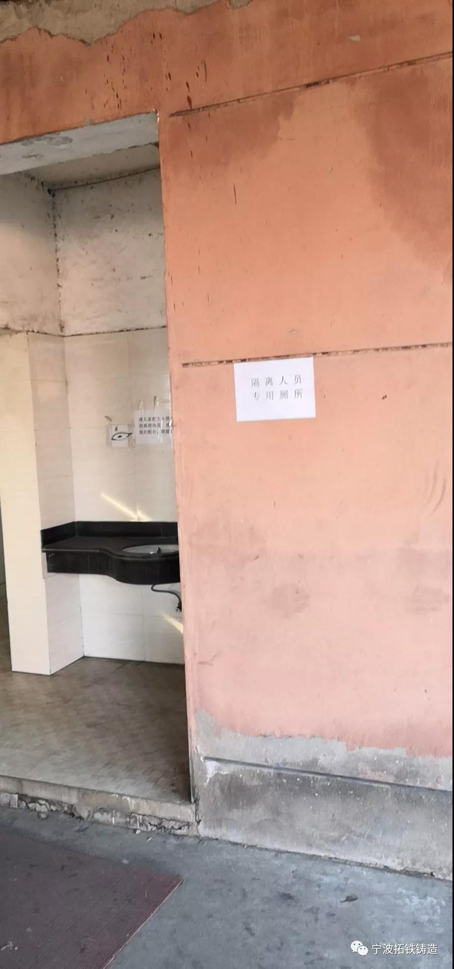 早在拓铁复工之前,公司成立的疫情防控小组和专班成员就已落实大量防疫工作,确保员工们身体健康和生活生产的合理合规。例如:设立隔离区及隔离人员专用厕所,以防万一;落实门卫、洗衣间、宿舍、食堂、行政楼、车间等区域的日常消杀规程;设立废旧口罩回收桶和疫情防控信息宣传栏;落实“一人一食”用餐规程等等。